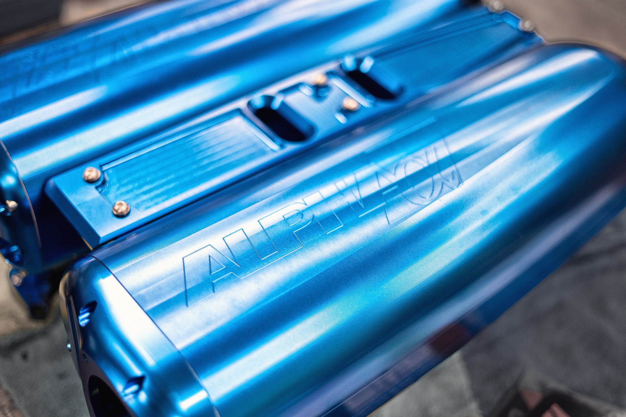 Design: Dual‑plenum layout (one per bank), with tapered plenums and raised billet velocity stacks for each runner — optimized to reduce turbulence and deliver even airflow.
