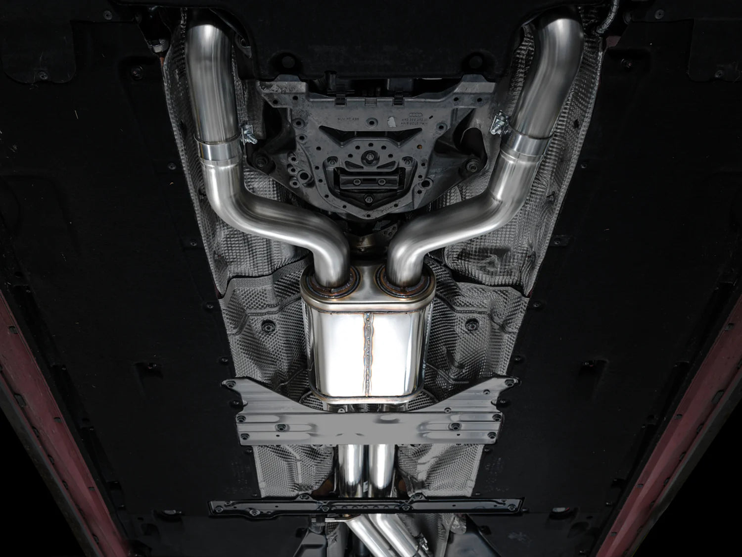 AWE SwitchPath™ Cat-Back Exhaust System featuring dual 3″ stainless piping.