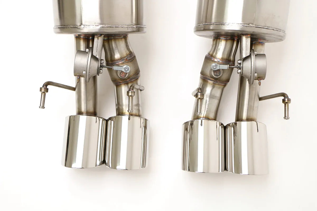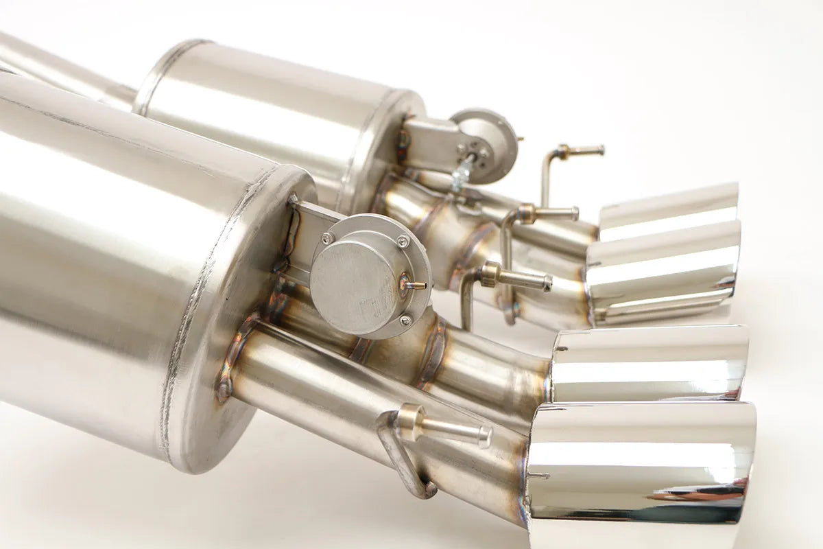 The B&B Fusion Axle Back Exhaust System (FCOR-0564) is a premium bi-modal exhaust upgrade for 2009–2013 Chevrolet C6 Corvette models equipped with the factory NPP dual-mode exhaust system. Crafted from mandrel-bent T-304 stainless steel with quad round tips, this axle-back exhaust enhances exhaust tone and flow while retaining valve-controlled cruising manners. The Fusion design blends the best of the factory NPP control with B&B’s performance tuning to deliver a deep, rich sound that’s mellow under light throttle and aggressive when the valves open — making this an ideal upgrade for drivers seeking a more dynamic exhaust note with bolt-on simplicity.