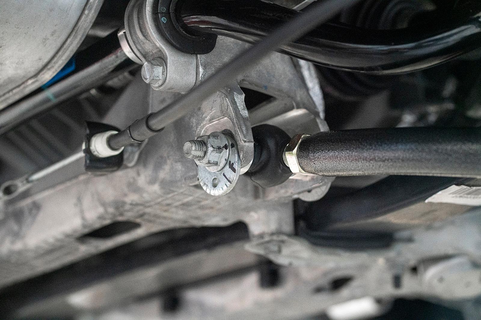 TR570 toe rods: 1.25" billet aluminum with rod-end bearings, designed to eliminate flex and eccentric adjustment issues