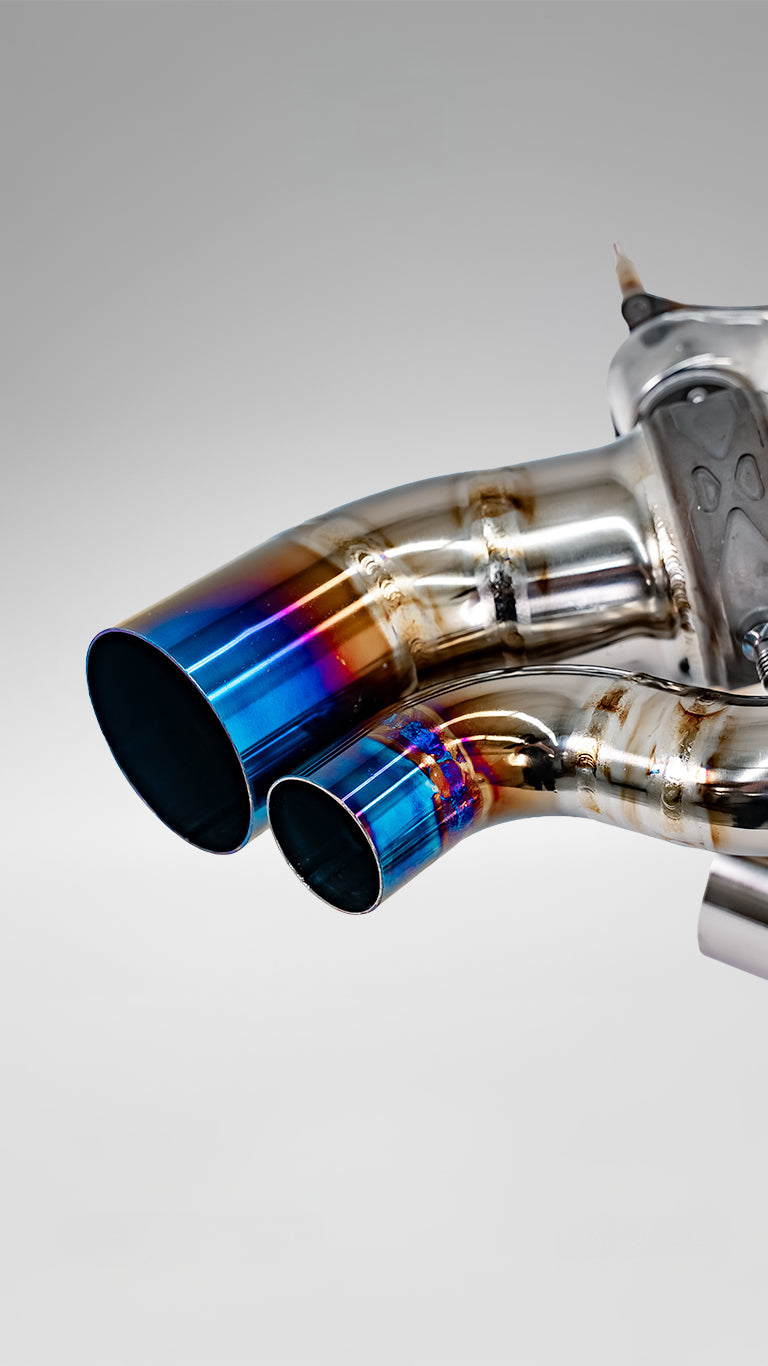 Introducing the Boden Autohaus Titanium Catback Exhaust for the Porsche 992 Turbo. Meticulously engineered to elevate both sound and performance, this system enhances the distinctive character of Porsche’s twin-turbo flat-six while delivering a more engaging and refined exhaust note. Constructed from ultra-lightweight A1 titanium, the system weighs just 8 lbs—an impressive 21 lbs lighter than the factory exhaust, improving overall efficiency, responsiveness, and the vehicle’s power-to-weight ratio for both street and track driving.