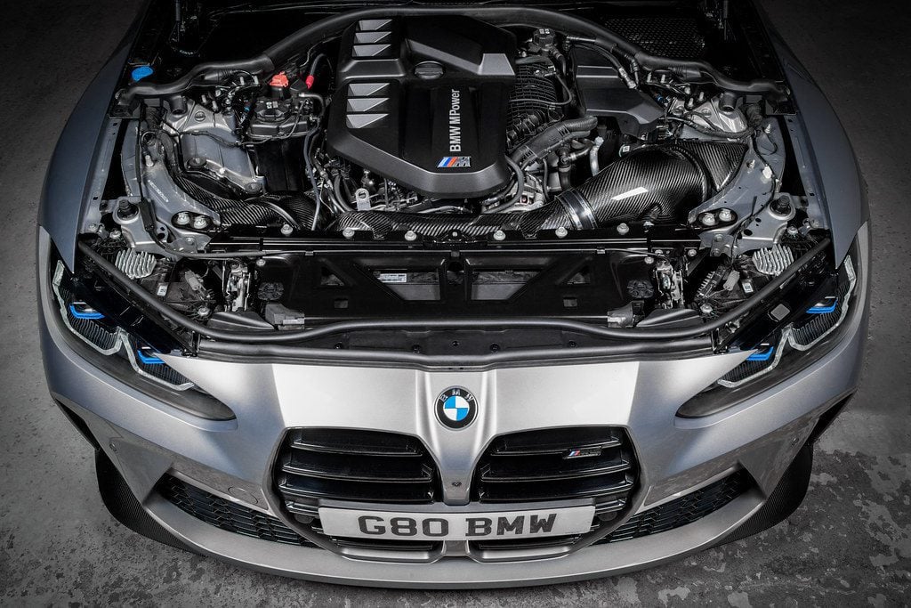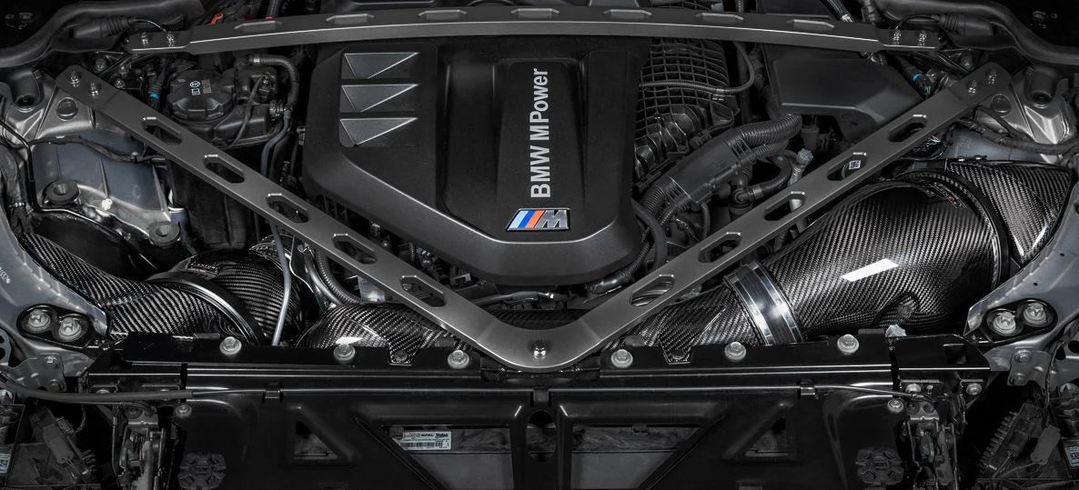 Transform your G8X BMW M2, M3 or M4 with the Eventuri Carbon Intake System — a precision-engineered, high-flow intake designed to outperform the restrictive stock airbox and unleash added performance potential. Constructed from premium prepreg carbon fiber and featuring patented Venturi filter housings with oversized, high-flow dry cone filters, this intake delivers a drastically more direct airflow path to the turbochargers, reducing pressure loss and increasing efficiency. You’ll notice improved throttle response, smoother airflow delivery, and real performance gains across the RPM range — all while dramatically upgrading the engine bay’s appearance with race-inspired carbon construction. Optimal for enthusiasts building higher-output engines or those seeking both performance and visual impact.