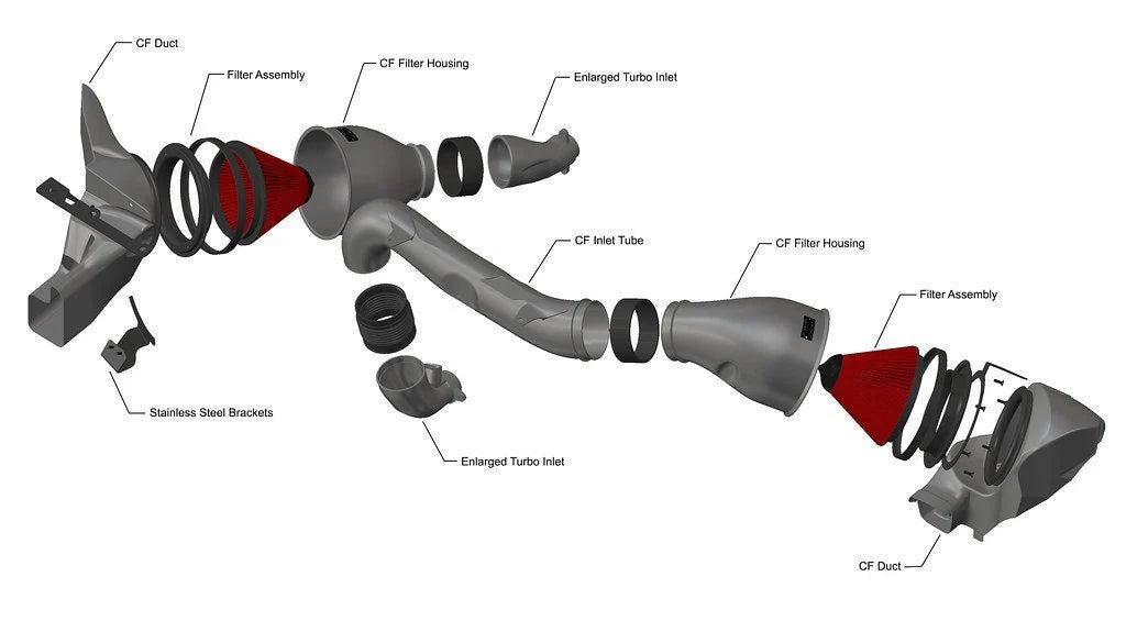 Professional installation recommended to ensure proper alignment of carbon ducting and turbo inlets (due to complex airflow path design).