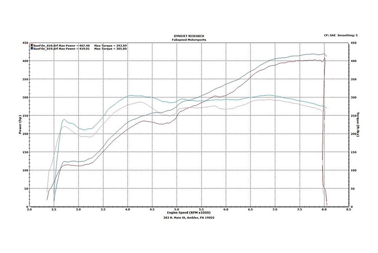 Pair of high-flow sport catalytic converters (left and right bank) using Fabspeed’s proprietary German-made HJS 200 cell high-flow cores.