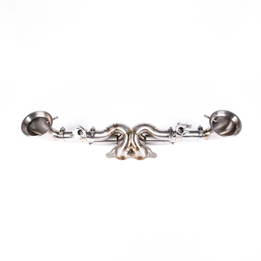 Flange interface: OEM-style 3-bolt 991 GT style fitting for custom tip choice