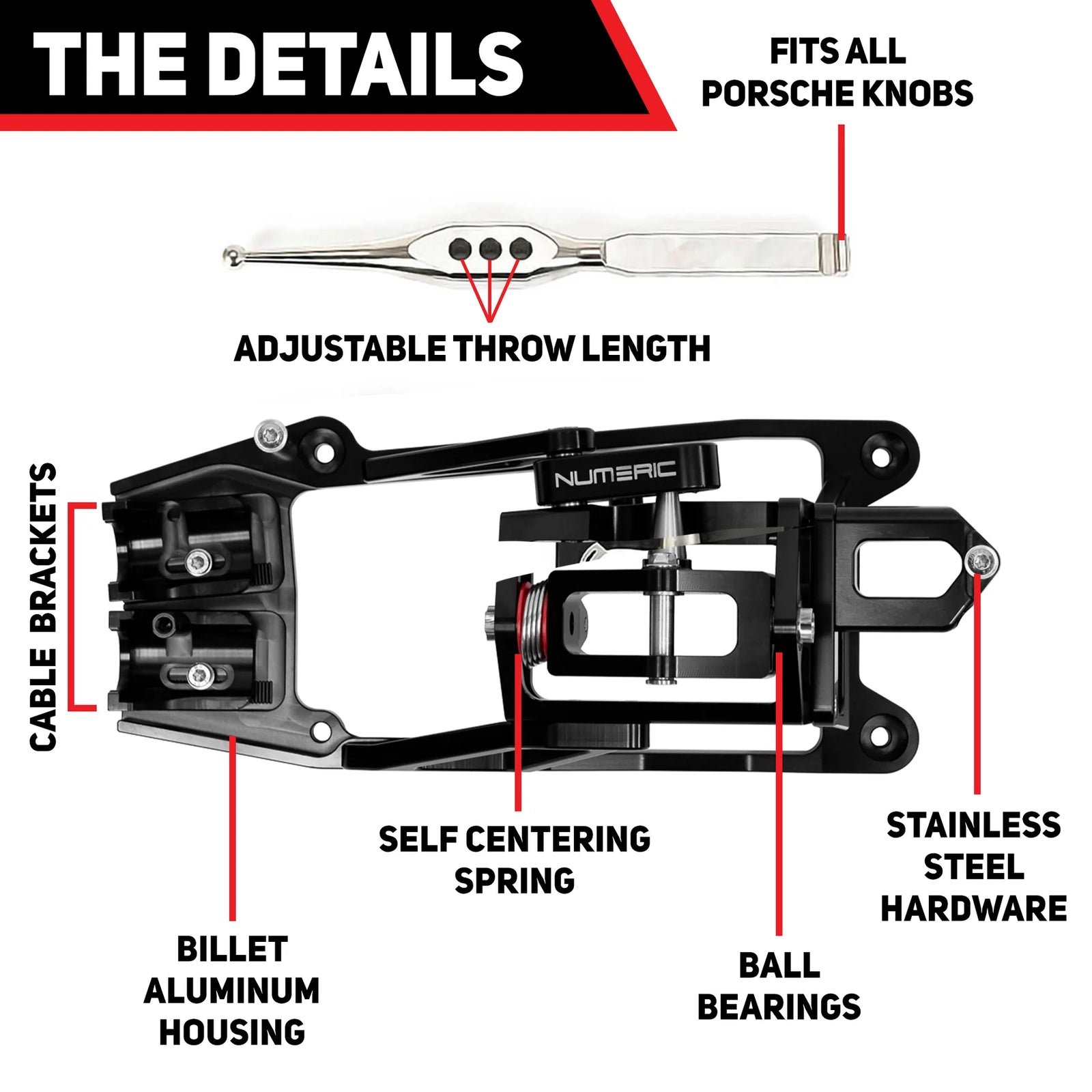 The one and only ball bearing adjustable short throw shifter for Porsche! Numeric Racing’s Shifter is a remarkable upgrade that transforms your driving experience with precision shifting and rifle bolt action engagement.