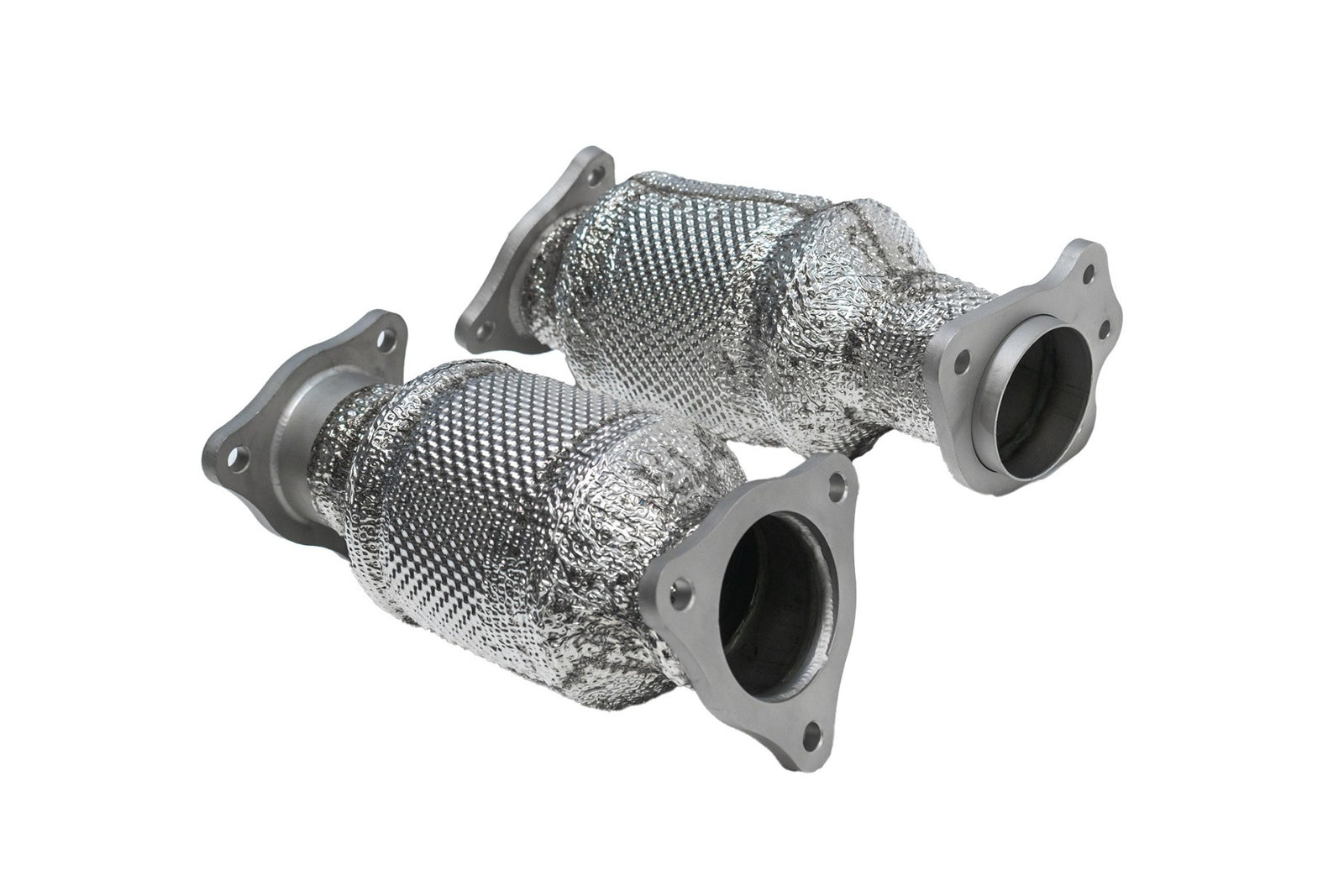 Installation: Direct bolt-on replacement for the factory catalytic converters; no modifications required.
