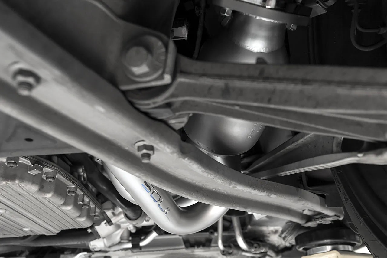 Includes free-flowing HJS 200-cell catalytic converters sized for this platform, helping avoid a check engine light without custom tuning.