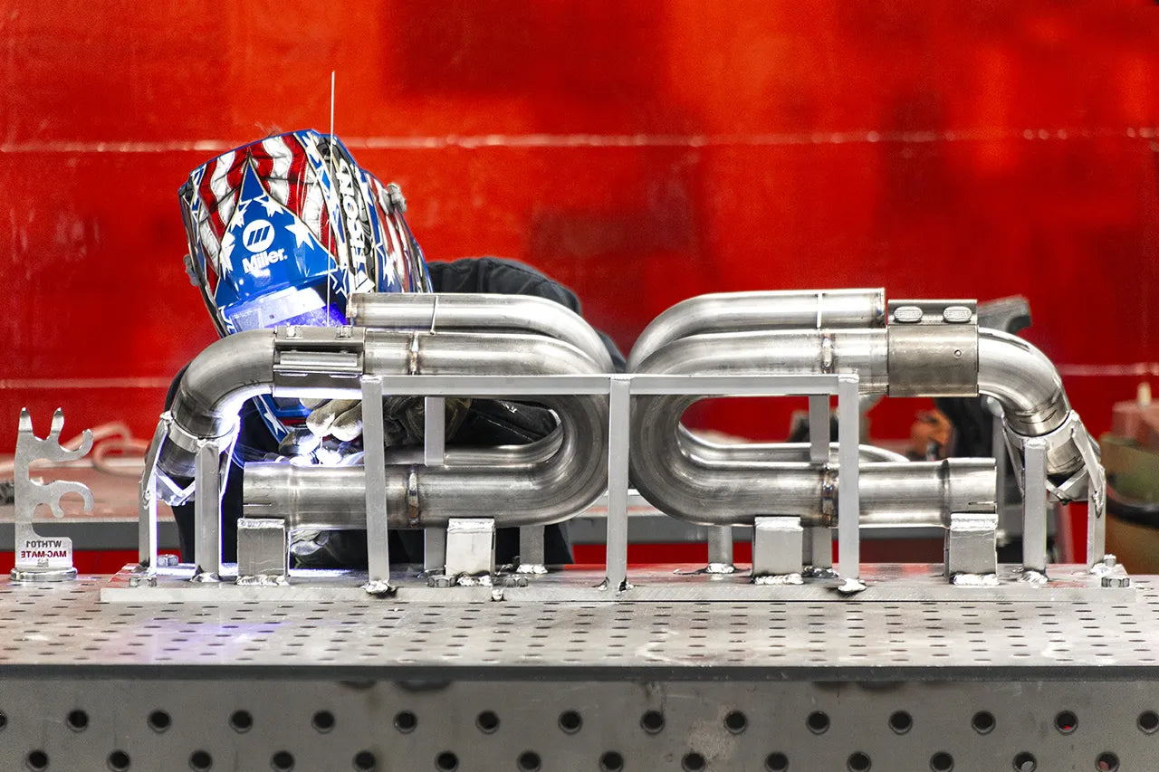 • Performance rear exhaust assembly in thick-wall mandrel-bent T304L stainless steel.