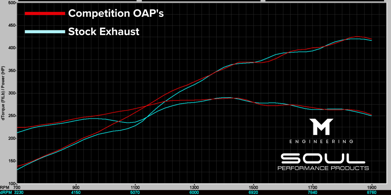 Weight savings: Approximately 8.25 lbs (3.74 kg) lighter than the factory over-axle pipe assembly (16.75 lb vs. 25 lb).