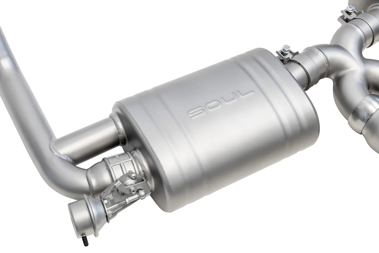 Complete Soul Performance Valved Exhaust assembly in T304L stainless steel.