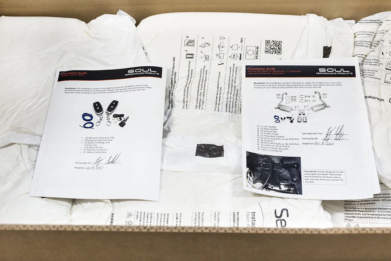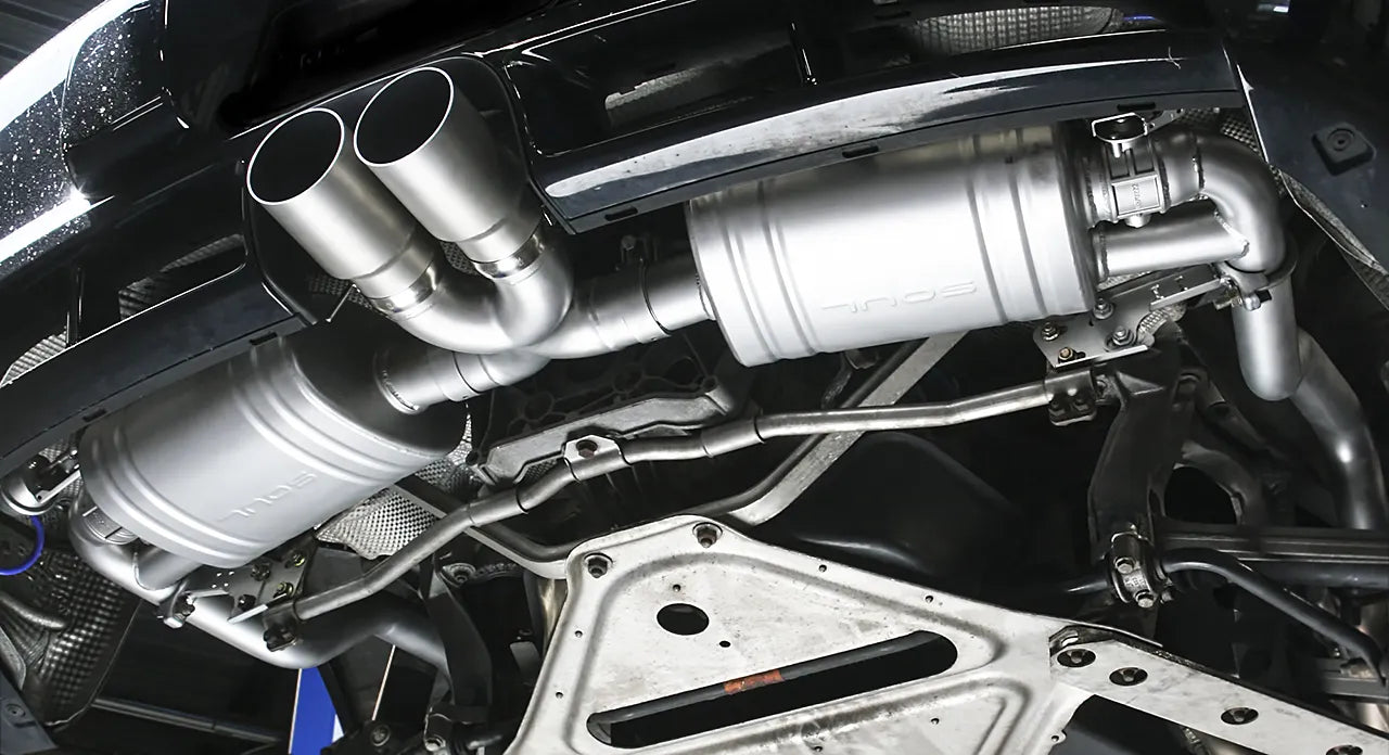 The Soul Performance Valved Exhaust System for the Porsche 987.2 Boxster and Cayman (2009–2012) is a dual-mode cat-back exhaust upgrade that gives you the best of both worlds: refined street manners and aggressive performance sound at the press of a button. With the valves closed, the system delivers a sporty yet drone-free exhaust note ideal for cruising and daily driving. When the valves are open, exhaust gases bypass more of the muffler, producing a richer, louder, and more track-inspired exhaust tone that brings the flat-six character to life. Built from mandrel-bent T304L stainless steel, featuring fortified mufflers and reinforced hangers, this system enhances throttle response and character while reducing weight compared to the factory system — all backed by a lifetime warranty for street and track use.